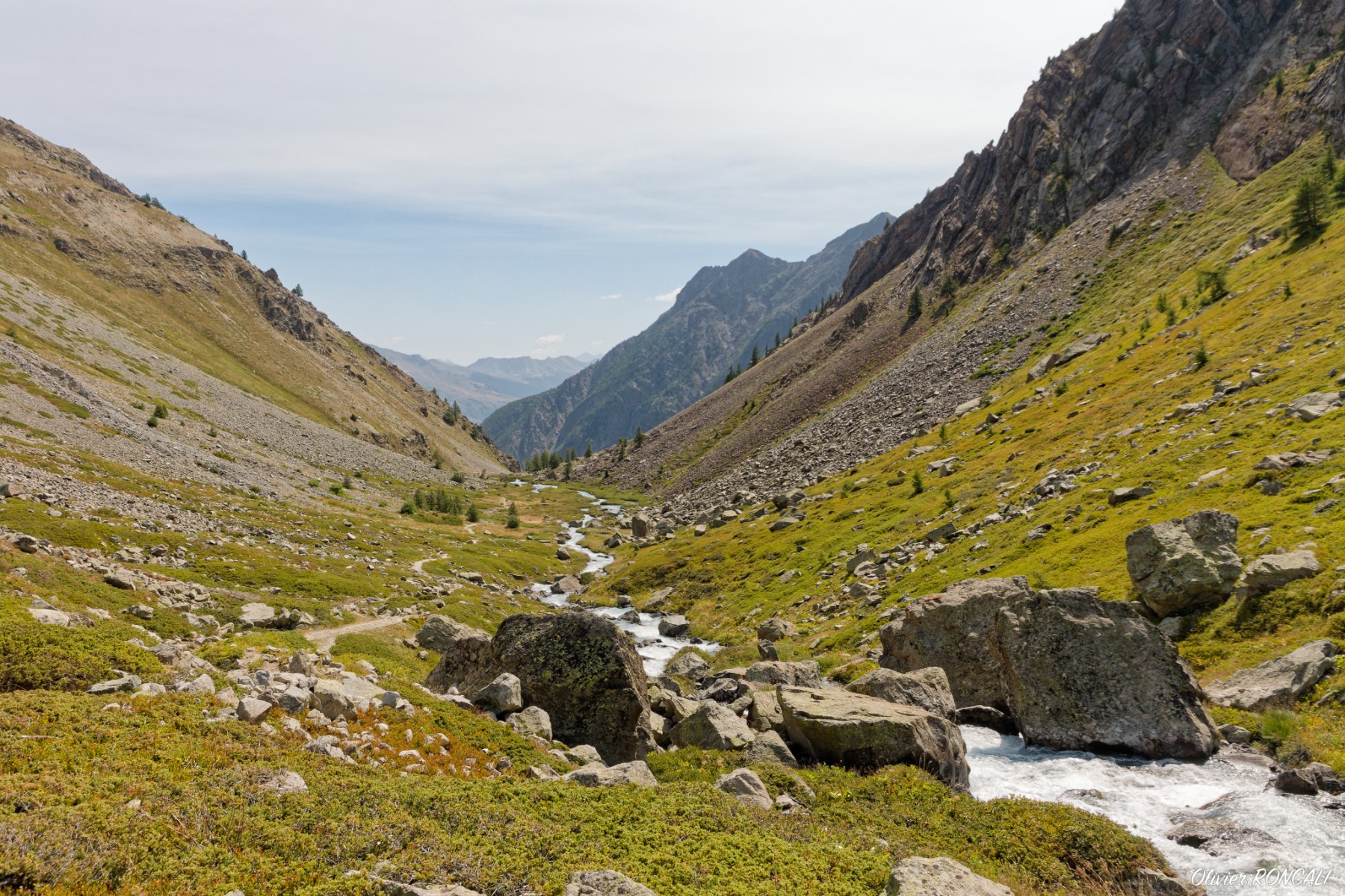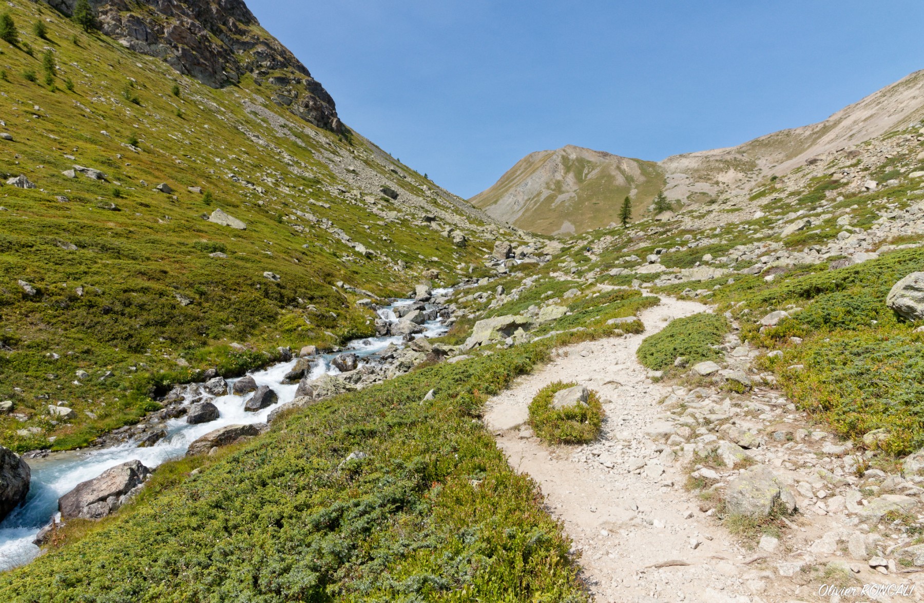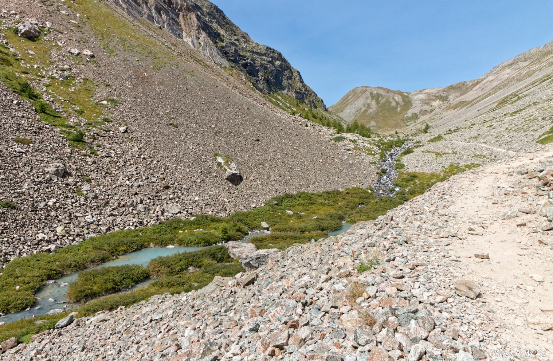 S’ensuit alors une longue remontée du vallon le long du torrent. On prend très progressivement du dénivelé dans des paysages superbes. Le torrent serpente par de nombreux méandres, s’élargissant parfois en vasques turquoises qui donnent au site son aspect remarquable et très photogénique.