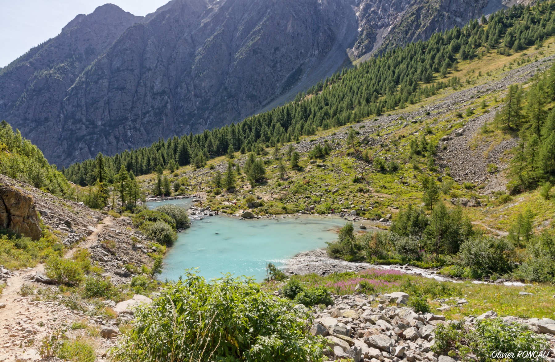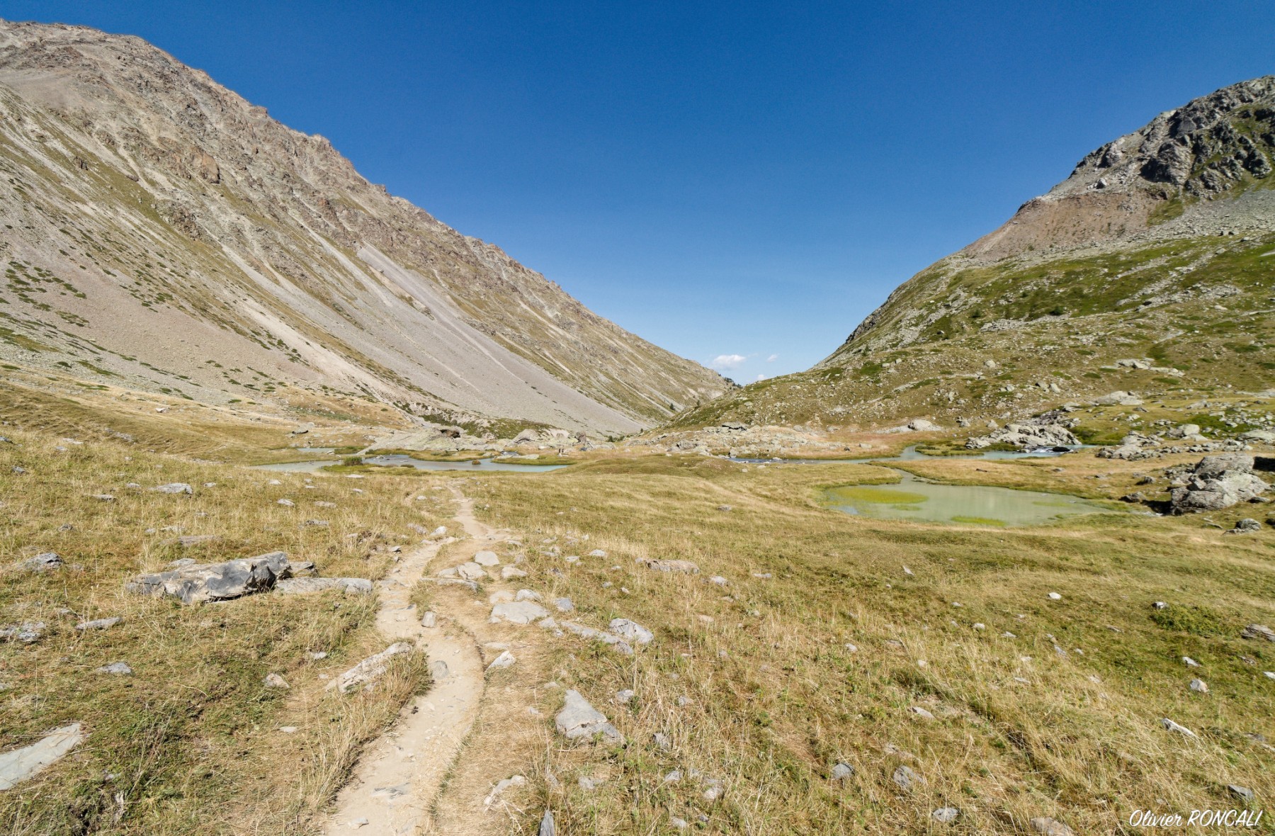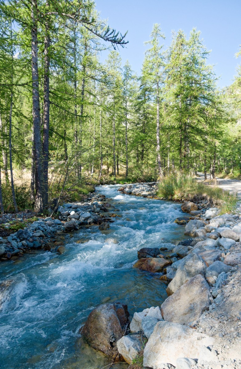 S’ensuit alors une longue remontée du vallon le long du torrent. On prend très progressivement du dénivelé dans des paysages superbes. Le torrent serpente par de nombreux méandres, s’élargissant parfois en vasques turquoises qui donnent au site son aspect remarquable et très photogénique.