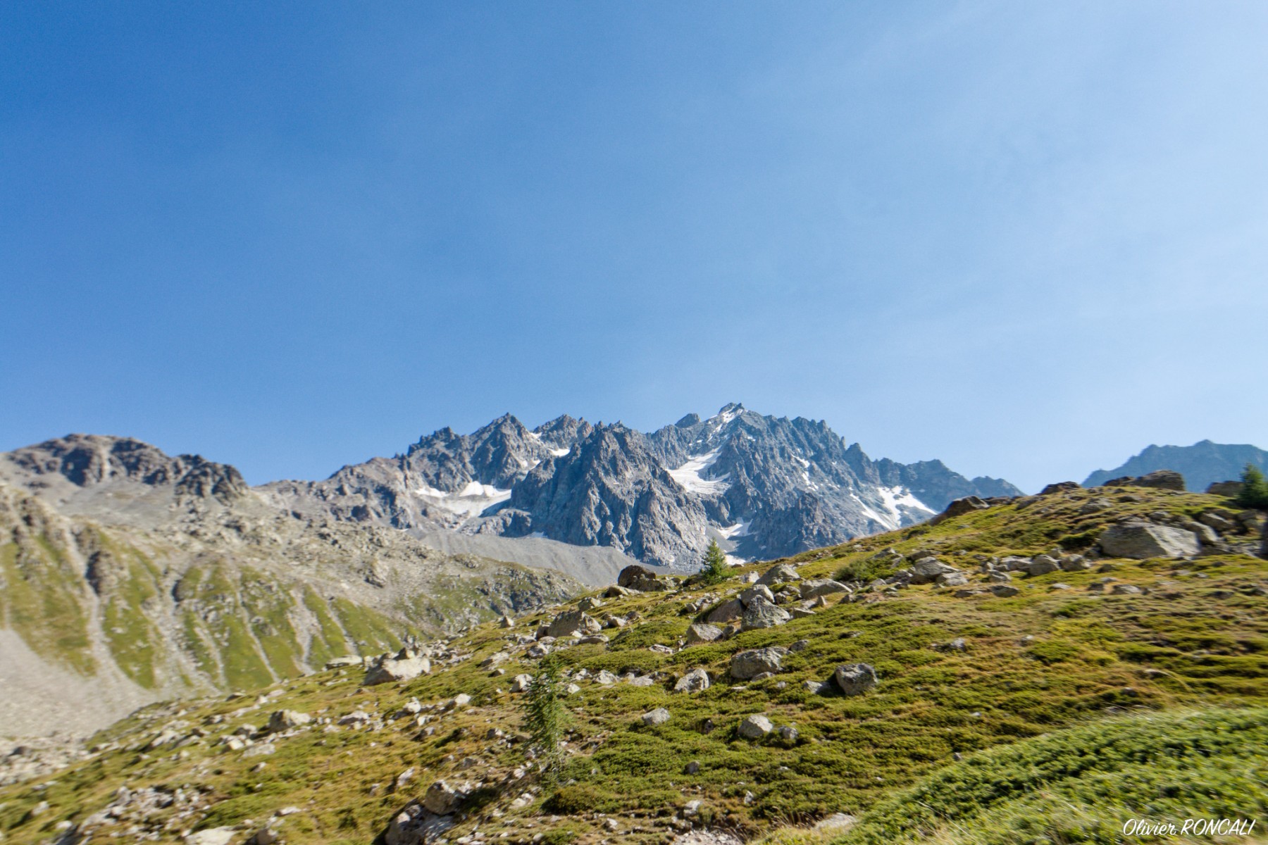 La dernière partie de l’ascension montre encore un nouveau visage. On évolue sur la moraine du glacier, dans des pierriers et la pente se fait plus raide. Malgré tout, les derniers 100 m de dénivelé se montent bien car le chemin est bon : large et bien tracé.